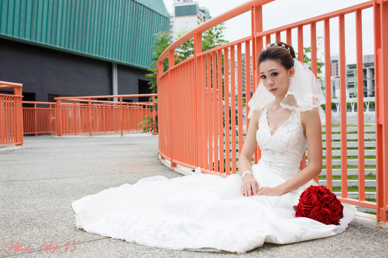 iamdc:背景切頭、黑柱、冷氣機、水溝蓋這些都不好,建議用大光圈或長焦散掉。 階梯裙擺可用廣角取鏡,有修長效果。 新娘躺地上,腳姿勢如能微側彎更有美感。 ....... (2013-09-27 21:36)